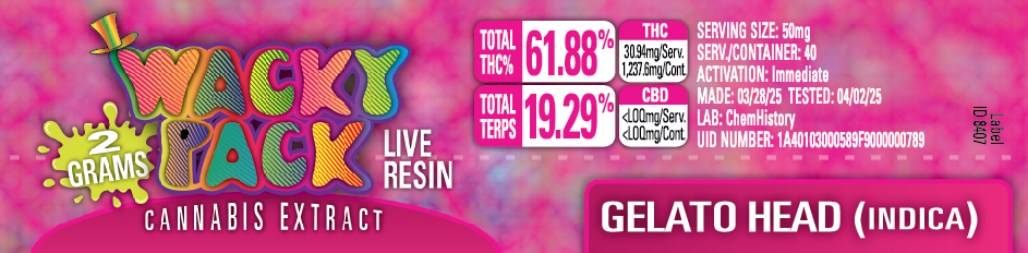 WACKY PACK LIVE RESIN Gelato Head (indica)